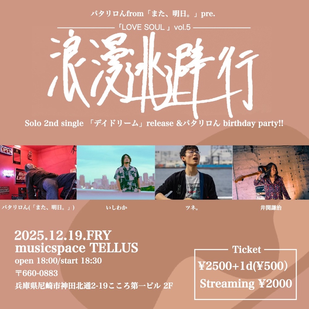 パタリロんfrom「また、明日。」pre.「-LOVE SOUL vol.5-『浪漫逃避行』2nd single 「デイドリーム」release &パタリロん birthday party!!」